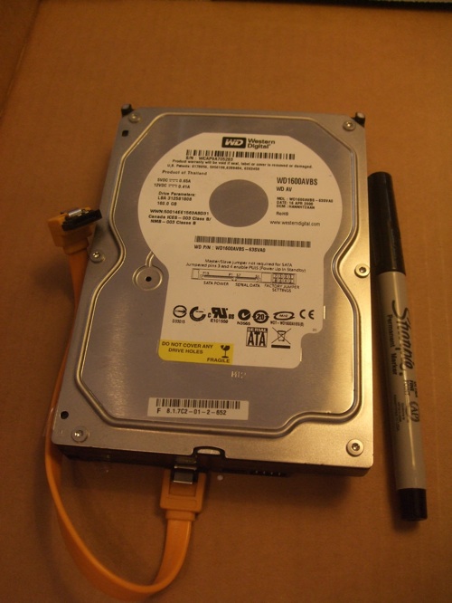 This is a hard drive that connects to the motherboard with the visible standard SATA connector. This is a 160GB, "3.5 inch" drive referring to the diameter of the spinning disk inside; the whole drive is about the size of small paperback book. This is a standard disk size to use inside a desktop computer. Laptop computers use 2.5 inch drives which are a bit smaller.