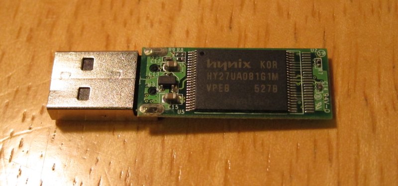 Here it is taken apart, showing the flash chip that actually stores the bytes. This chip can store about 1 billion